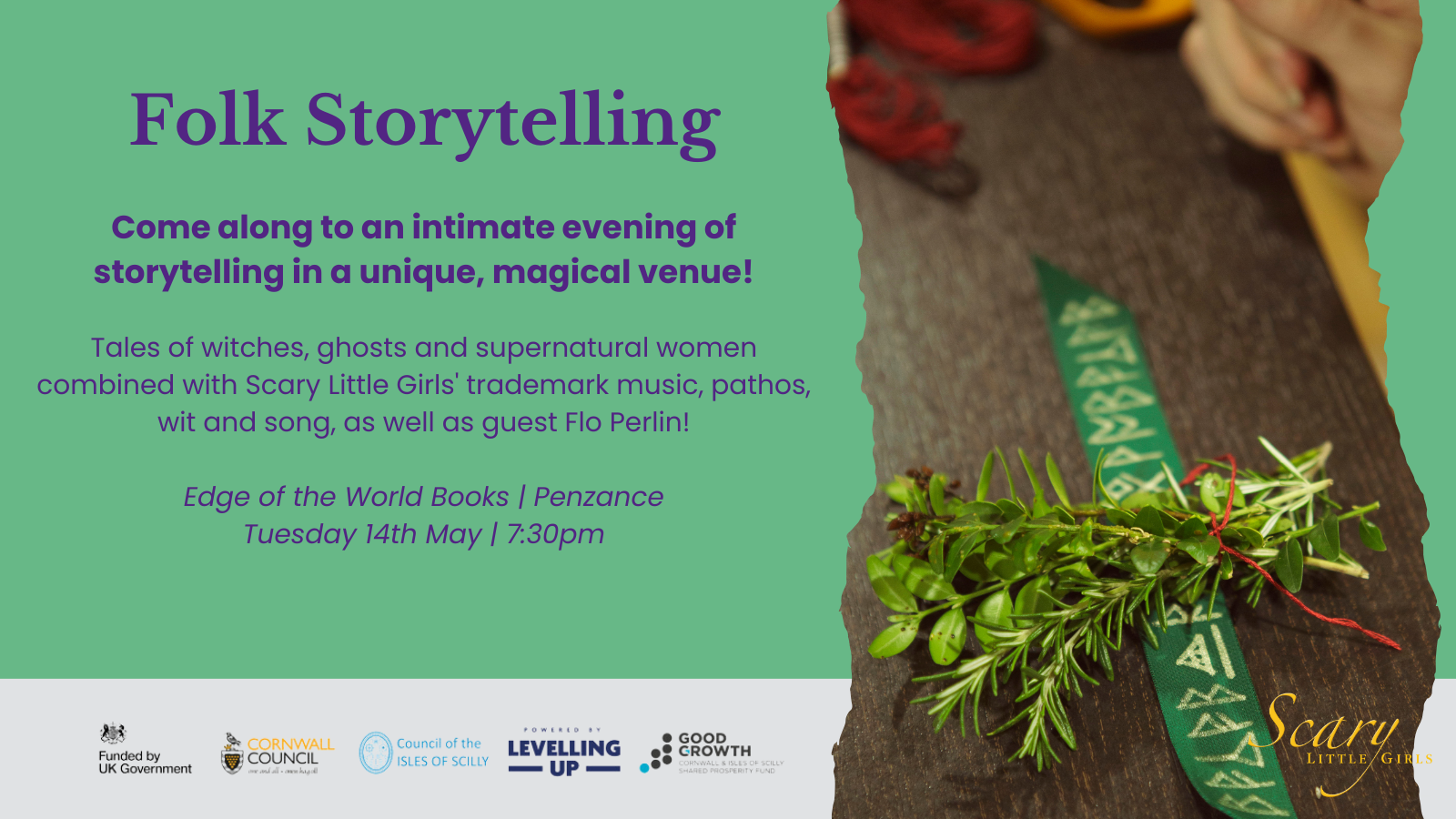 Featuring tales with themes of witches, ghosts and supernatural women. As always with our storytelling events, we’ll be combining Scary Little Girls’ finest performers and a welcoming environment with music, pathos, wit and song.